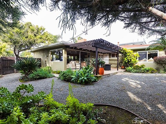 Discover the epitome of coastal living in this rare double-lot property, ideally situated in the coveted Southwest San Clemente neighborhood. Just moments away from the renowned T Street beach, the iconic Pier, and world-class surf, this mid-century single-level home offers a unique blend of charm, character, and the promise of endless possibilities. Boasting 4 bedrooms and 2 full baths within 2034 sq. ft., this single-level residence provides a comfortable and functional layout. The kitchen has been thoughtfully remodeled, featuring an abundance of Shaker cabinetry, elegant quartz countertops, luxury vinyl flooring, and an inviting eat-in breakfast nook. The spacious living room is adorned with a fireplace, creating a cozy atmosphere. The large windows and oversized sliding doors flood the living spaces with natural light. The generous sized master bedroom includes an en-suite bathroom with a walk-in shower stall, separate soaking tub and sliding doors leading to the picturesque yard. Embrace the timeless appeal of the mid-century architecture evident in the clean lines and a seamless integration with the surrounding meticulously landscaped yard. Two covered patios extend the living space, providing the perfect setting for alfresco dining, relaxation, and enhancing the outdoor experience. Enjoy the convenience of a 2-car garage with direct access, a sizable laundry room with storage, tankless water heater and a whole-house water purifications system. The property's generous lot size allows for an expansive wrap-around yard, perfect for entertaining, gardening, or creating your own private retreat. The lot has possibilities to be divided. The residence is more than a home: it's an opportunity to embrace the quintessential Southern California lifestyle. Don't miss your chance to own a piece of this coastal paradise.
