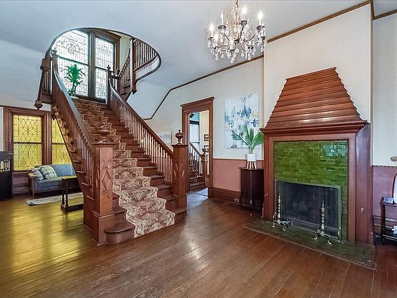 Check out this stunning 4 bedroom 2.5 bath colonial revival built in 1898. Preserved are the magnificent original details such as the grand circular freestanding oak staircase in the foyer overlooking 2 story stained glass windows and worm glass front door, oak flooring, original trim & baseboard, 4 sets of 8' pocket doors, 8 fireplaces and a butlers pantry. The inviting circular front porch, the screened in back porch with an amazing deep backyard are great places to relax and unwind. Modern upgrades include: roof with built in gutters, zoned high efficiency HVAC system, remodeled kitchen with quartz tops & modern appliances, glass walk-in double shower, plumbing & electrical upgrades, closet systems, 26 new replacement windows. TONS of other improvements are listed on the sellers disclosure. Lots more potential living space in the unfinished basement & attic area. This home is a must see if you are in the market for a move-in ready historic home with modern amenities! Located in beautiful and award winning Danville, KY close to downtown attractions, shopping, great dining, Centre College & Norton Centre for the arts