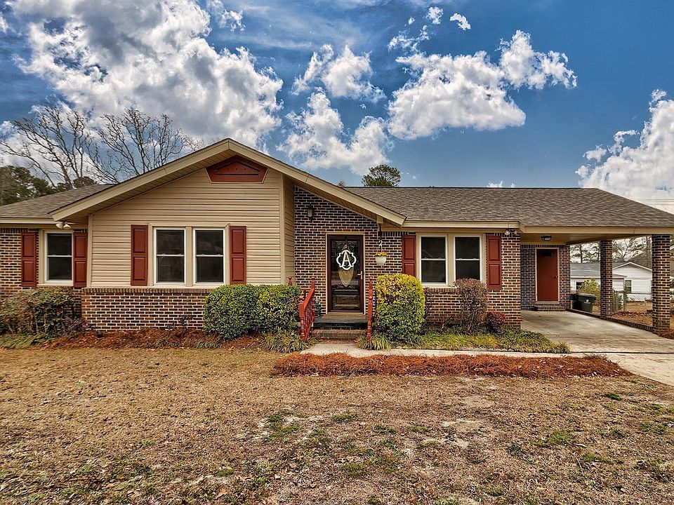 Conveniently located to I-26, Downtown Columbia, Lexington and Columbia Airport, this brick ranch home on over a 1/4 acre lot has been lovingly cared for by one owner! All entry doors are gorgeous wood with glass insets! Freshly painted interior provides a bright open concept living space with large kitchen featuring dining area and breakfast bar with cabinets below! Laundry is indoors and includes lots of storage space! Refrigerator is included along with dishwasher and range! Beautiful original hardwood floors just refinished in living room, hall and all 3 bedrooms! Matching laminate floor in kitchen and sunroom means no carpet! Off the kitchen is a large, bright sunroom which can be used to enjoy morning coffee or enjoy this multi use space as a playroom, home office or 2nd living space! It could even be closed off and turned into a 4th bedroom. Huge covered deck off back of sunroom for entertaining or relaxing! Back yard is fenced and has plenty of space for gardens, storage, pets to run and play and/or toys! Back inside, the master bedroom has private updated bath and dual closets! The full sized hall bath has tub/shower combo. Ceiling fans in all bedrooms and living rooms. Architectural shingle roof! Energy efficient windows! Spacious Utility Room in carport and backyard shed for additional storage included! NO HOA!