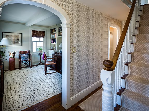 Benedict Farm, a beautifully maintained historic home, is surrounded by stone walls and a mature, private landscape with exquisite gardens, pool and pool house. The house has been updated with extensive fresh modern touches. Updated and new kitchen and baths make this charming home comfortable and convenient. Surrounding the kitchen are the dining room, living room with built-ins & wet bar, a large playroom,and a cozy family room with hand-hewn stone fireplace. There's an office and mud room too. Upstairs master can be used as separate two room suite or as master with adjacent nursery. Separate two story garage w courtyard. Surrounded by barns and land, yet minutes to town center. Young and fresh with substantial updates by current owners. Just move in and enjoy!