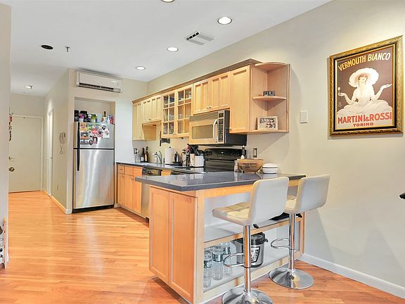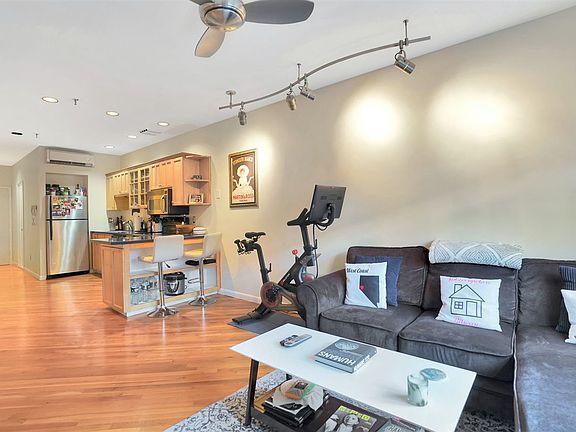 With a great open layout to maximize space, this one bedroom condo in a well maintained 8 unit building features a private balcony off the bedroom, stainless steel appliances, Corian countertops, hardwood floors, split heating/AC systems, and free common washer/dryer. Located in the heart of downtown, steps from the vibrant nightlife and innovative restaurants that make this mile square city special. A short walk to the PATH, NJ Transit trains, and ferry. NYC buses located steps from the condo. Sorry, no pets permitted in the building. Video available upon request.
