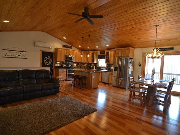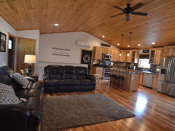 Beautiful custom built ranch! Quality & detail; Contractor built as his own home; Fabulous big great room with wood vaulted ceiling; Gorgeous hardwood floors; Corner stone electric fireplace-focal point of great room; Recessed lighting & wood 6 panel doors throughout. Master suite has big bath - walk in shower; 1st floor laundry; Amazing kitchen has lots of cabinets, SS appls, granite, glass tile backsplash & island; Nice 26X26 finished garage has wood stove; Carport; Large driveway and turnaround; Lovely covered deck, concrete patio: Scenic park like 5 acres is private & peaceful with views! Barn has concrete floors & metal roof; Charming covered front porch; 10 minutes to major roads, Wegmans & Front Street Shopping; Exceptional home! Move in and enjoy carefree living.