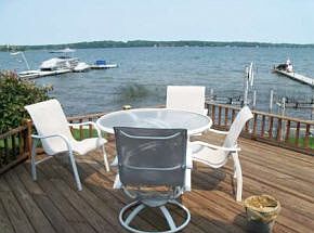 This lakefront home features vaulted ceilings in the LR, gas frplc, & an enormous porch w/full windows to take in the lake views. This 4 BR & 4.5 BA home has it all! The spacious kitchen w/loads of cabinetry & over sized pantry, open to the formal DR & onto the spacious LR. Very lrg main floor master BR & lrg BA, his & hers closets. There are 3 very lrg BRs upstairs, each w/own walk-in closets, BAs, & a plenty of space. Huge tiered deck near the waters edge, 2+ car garage w/tons of space. Main flr laundry room, all appl. stay.Lot size/SF est. Nipsco Natural