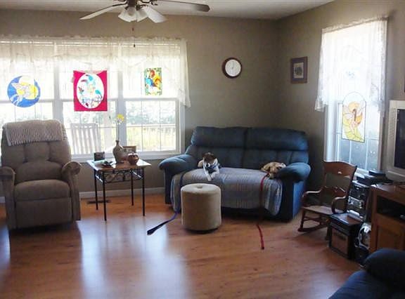 You will not believe this house. It is sooo cute. Just the one you have been looking for. All laminate floors except the kitchen and baths. Maintenance free exterior/vinyl. Front porch, Lg screened porch that overlooks fenced horse farm. Wooded on either side. Very private. Lg extra bedroom was to be 2 bedrooms, but decided to leave it large for craft room/bedroom. Beautiful light oak kitchen cabinets. Pantry. Many closets. Additionally, 2 outbuildings for storage. Cute well house.