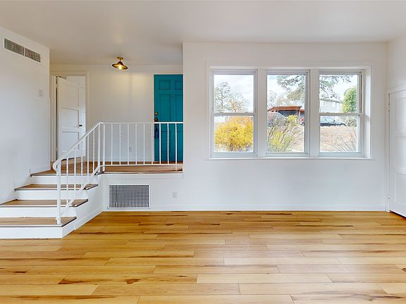 Welcome to this charming two-bedroom, one-bath residence, where natural light abounds through its generous windows. Perched above its eastern neighbors, this home offers lovely vistas and an airy ambiance. The spacious, fenced yard boasts a garden area and a handy shed. Inside, you'll find newly installed flooring and modern fixtures. The shared wall features a roomy closet, providing both neighborly separation and ample storage. Additional storage space is available with a large front closet and a generous linen closet. For your convenience, there's designated off-street parking for two vehicles. This home is ideally located near trails and bus stops. Join us for an open house on Saturday, October 28, from 12-2, or reach out for a private showing appointment.