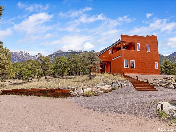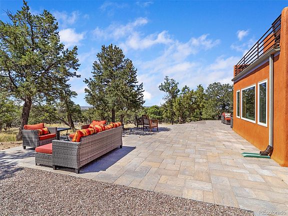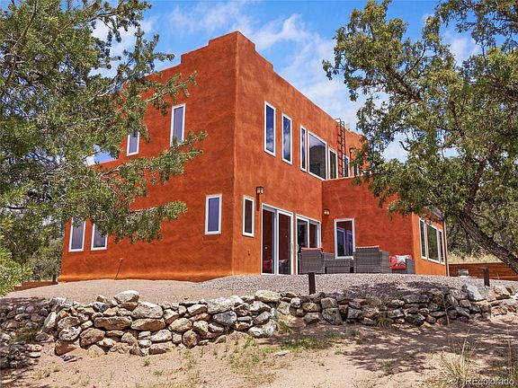 The very best of Crestone living inside & out: acreage, privacy, views, light, passive-solar design, fine finishes & multi outdoor spaces! Perched atop a hill backing to large greenbelt, enjoy unparalleled protection from future development. Includes 1.3 bucolic acres w/ option to purchase 2.34 more. The 2-lvl 1655sf home has 3BD/2BA + den & many custom features. 1500sf+ wraparound patio & hardscape, perfect to dine al fresco, entertain, stargaze, exercise, lounge under a tree, install a hot tub, pergola, catio - whatever the heart desires. Fine interior features include: slate floors w/ radiant heat, diamond-coat plaster walls, aspen T&G ceilings, custom hearth by Roy Gould, enamel Lopi LP stove, stepped wall & more. Enter via covered front porch & mudroom/airlock. Once inside, the beauty of the surrounding pinon-juniper woodlands is apparent through windows on 3 sides. A bonus bar w/ drawers & cabinets dbls as entrance credenza, perfect for keys, phone, wallet, etc. The U-shaped cook's kitchen has new stainless fridge & dishwasher, Viking-family LP range, patinaed concrete counters & stained cherry/glass cabinets. Sit at the peninsula counter, also perfect as a buffet. The bright spacious LR invites you to relax or visit w/ friends. Never a dull moment when you dine facing the patio/backyard & nature beyond. Full guest BA & BD are down the hall. Head upstairs to bright den/office, another guest bedroom & primary suite. Here, the views are elevated & sweeping; marvel at the vast SLV or approaching weather. A covered balcony is perfect for summer sunsets, while the bedrooms open onto a spacious south-facing composite deck. Set up your yoga mat at sunrise, or pop out to see the stars at bedtime. The bright primary BD has mtn & valley views & large walk-in closet w/ built-ins. Primary BA has custom tile, deep soak tub & steam shower. High R-value SIPs construction w/ durable stucco exterior, recently refreshed, & flat membrane roof. Call today, this gem won't last.