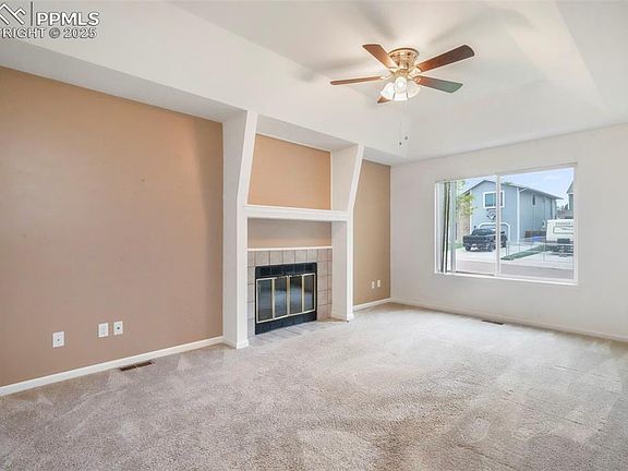 Welcome home to this immaculate gem in the heart of Constitution Hills! This beautifully maintained property offers a spacious living area highlighted by a cozy wood-burning fireplace—perfect for Colorado evenings. The open, eat-in kitchen features durable LVT flooring, stainless steel appliances including a double oven, newly refinished cabinets, and a convenient washer and dryer. Step outside to enjoy the expansive, low-maintenance backyard complete with a turfed dog run, fully fenced perimeter, a sprinkler system, and a planter garden with its own sprayers—all framed by breathtaking Pikes Peak views. Inside, you’ll find two bedrooms with newer carpet, including a primary suite with an attached half bath, a generously sized bedroom offers a walk-in closet and easy access to the updated 3/4 hall bath. Additional highlights include a newer hot water heater and a brand-new roof, ensuring peace of mind. This home is move-in ready and waiting for you!