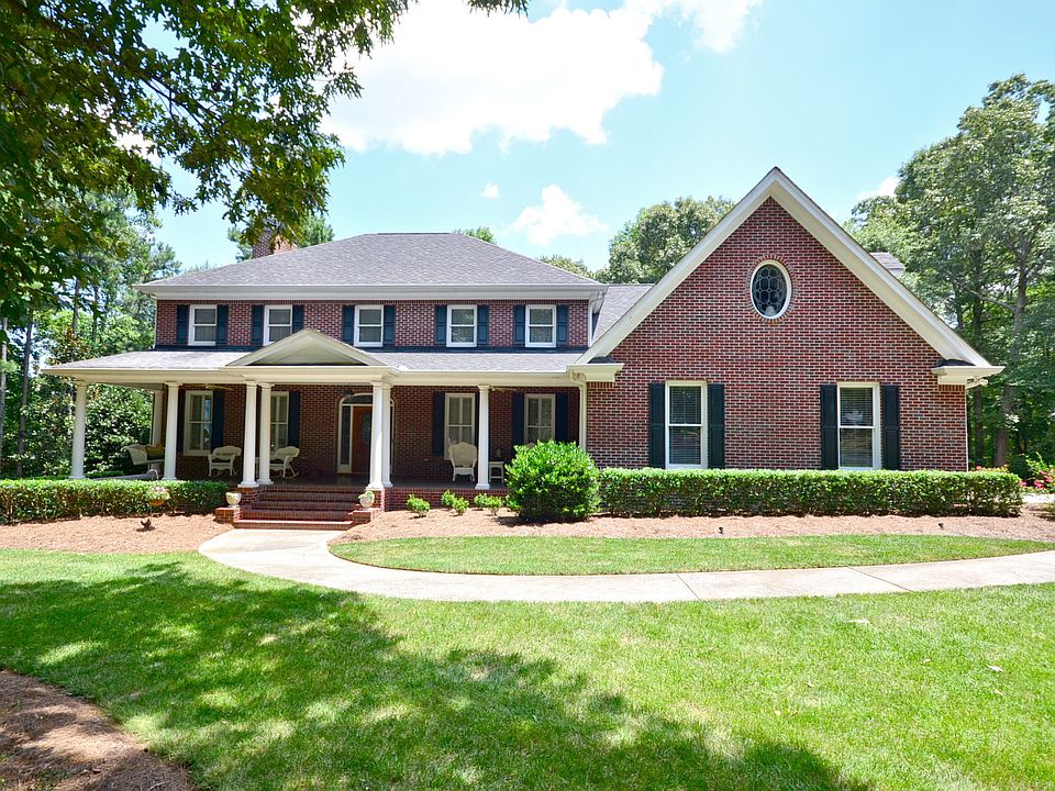 Beautifully situated 4 sided brick beauty on 7.8 acres just minutes to downtown Lawrenceville.Glorious rocking chair front porch.Master-on-main with stacked stone hearth fireplace in den open to kitchen.Huge dining room perfect for family and holiday gatherings.Oversized bonus room upstairs perfect for media, playroom.Basement has full bath, flex room, enormous workshop & boat door.Screened porch off den, covered patio below w/additional patio overlooking coi pond, with another pond beyond & huge barn w/electricity. Easy access to Sugarloaf, 316,78,85.Nearby shopping.