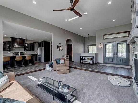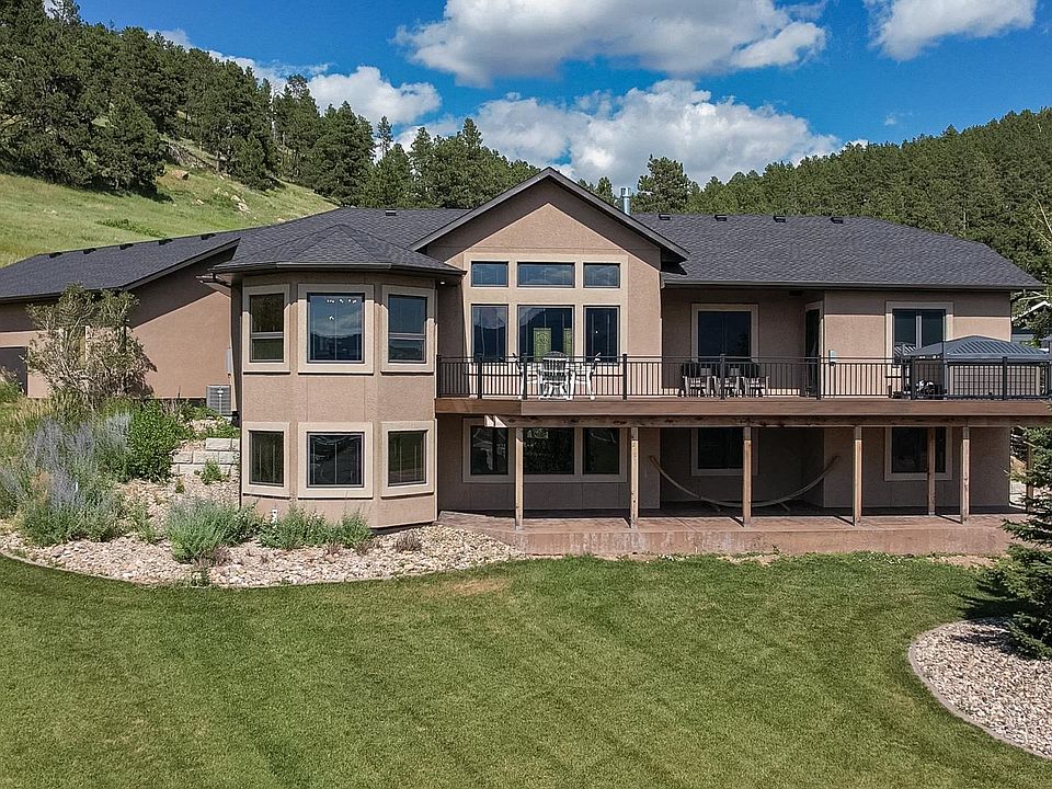 Listed by Lori Barnett, VIP Properties 605-786-5817. This amazing custom home sits atop the famed city of Sturgis with panoramic views of the beautiful Black Hills. The main floor offers a large living room with fireplace and vaulted ceilings. The living room opens to the kitchen and dining area with expansive views of the hills from every window. The modern kitchen is equipped with stainless steal appliances, a large island, granite countertops. A deck runs nearly the span of the home with access from the living room and the master bedroom. The main floor master leads to the master bath with his and her walk-in closets and vanities, jetted tub and a massive walk-in, tiled shower. A second bedroom, bath and laundry complete the main floor. The lower level features a walk out with spacious family room, three bedrooms, one and one half bath, as well as numerous storage areas. The home sets on over two acres and borders Bureau of Land Management land. No showings 8/3-8/15.