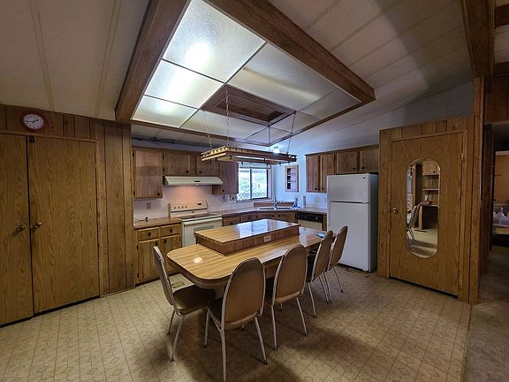 This manufactured home boasts over 1,700 square feet and has only had one owner since it was built in 1985. There is so much space in the home! There is a living room, dining room, family room with fireplace, master bedroom with walk in closet, laundry room and tons of storage space. Plenty of space for everyone! Appliances staying with the home include: stove/oven, dishwasher (not working), washer and dryer (not working). There are several yellow stains on the ceiling throughout the home. The roof was replace about 8 years ago though and likely from the old roof. The lot rent is $929 a month and includes garbage / recycling, lawn service, and park amenities (swimming pool, playground, walking trails, fitness center). Park does allow small pets.