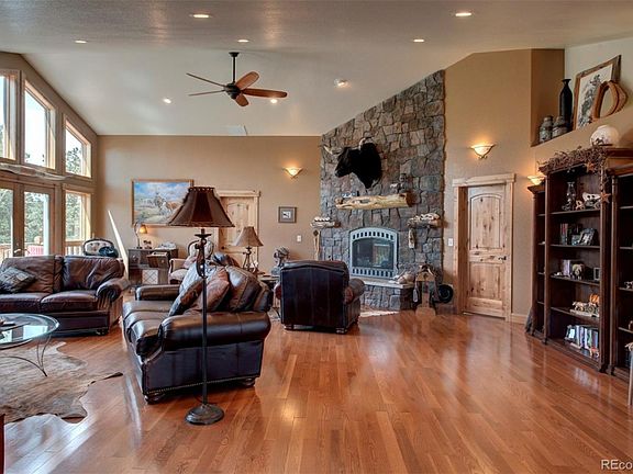 Where the pavement ends, the West begins. Just 45 minutes from Denver or 90 minutes from world class skiing, this spectacular one-of-a-kind ranch is nestled in a lush valley with snowcap views from Pikes Peak to Rosalie to Lion's Head. A stunning custom home, bunk house, cook house and Old West Town party barn are just the start of amenities you'll find on this 35 acre equestrian paradise. Add in a 4320 sq ft barn with 15 stalls plus tack room, a 50' round pen, a 220'x115' arena with viewing stand, multiple pastures and turnout options and then cap it off with 2 miles of beautiful riding trails cut into the property, and the potential is truly limitless. Whether you?re a professional horseman or just own your own trail horses, this ranch is all set up with the pro in mind. Moving inside, the home's great room has multiple focal points: on one side you have a gorgeous rock fireplace just waiting for you to relax on a chilly autumn evening. On the other side, a wall of windows leading out to a large deck to take in the views and enjoy a summer happy hour. The custom kitchen is a dream with knotty birch cabinets, granite countertops and breakfast bar, and slate stainless appliances. Enjoy either a quiet breakfast and cup of coffee at a bistro table by the window that looks over the pastures, or get the whole gang together for a boisterous holiday dinner in the dining room. The sunroom lets you enjoy the scenery year-round, with wildlife abounding. The newly finished living space above the garage is currently a terrific exercise room, but it?s separate entrance would also make for a fantastic large home office or studio. Video, Matterport 3D tour and Virtual Tour are all available here so you may experience the property before you visit the property. Old West meets New West: Tombstone Ranch.