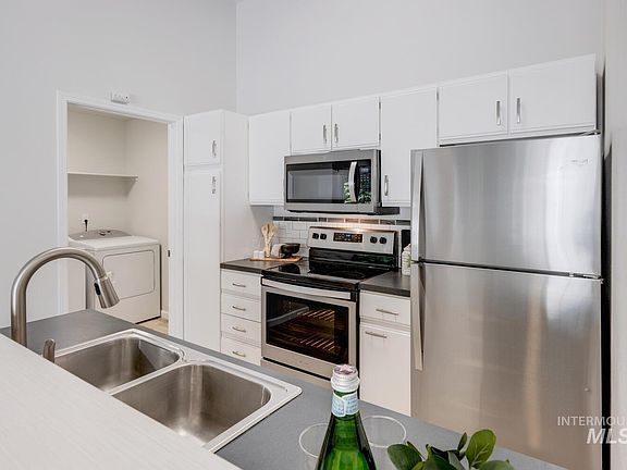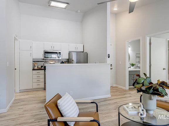 Recently updated condo featuring two spacious en-suites with large walk-in closets & renovated bathrooms. The kitchen is the heart of the home, and this one doesn't disappoint. Soaring vaulted ceilings, updated countertops, tile backsplashes, designer lighting, and stainless Whirlpool appliances make it a joy to cook in. The durable luxury vinyl plank flooring is easy to care for & gives a higher-end touch throughout! The upper level unit provides peace of mind & welcomes an abundance of natural light. Enjoy summer evenings on the balcony, shaded by mature trees. Laundry room & extra storage solutions. Reserved covered parking. Perfect location for those who want to be close to everything Boise has to offer! Easy access to I-84, Boise Airport & downtown is just a few minutes away. Walking distance to Phillippi Park & public transportation. Community green space with shaded picnic area & fur-friendly park. HOA fees take care of water, sewer, trash & grounds maintenance, so you can relax & enjoy your home!