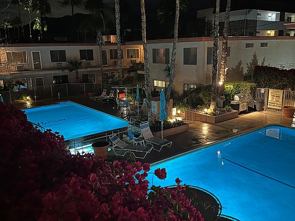 Contemporary furnishingsTwo sparkling poolsStunning san jacinto mountainsSleek finishesSpa-inspired bathroomLarge windowsUpdated fixtures