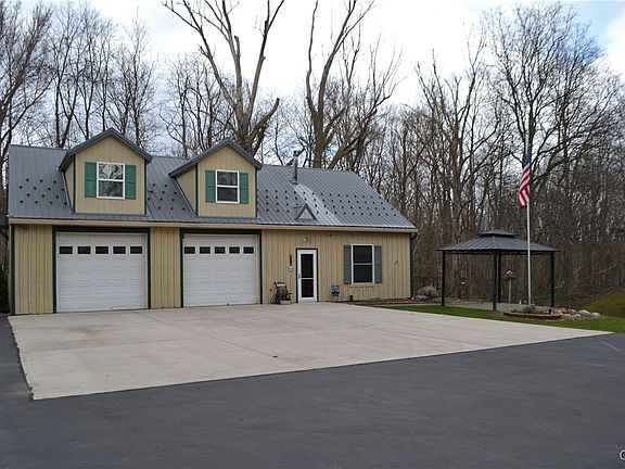 Set on a tranquil 1.46-acre lot well back from the road, this thoughtfully updated 2-bedroom bungalow offers peaceful living with impressive upgrades. Inside, the open-concept layout showcases a soaring ceiling and a bright loft bedroom overlooking the living room and kitchen. The second bedroom—an expansive owner’s suite located above the garage—features a Jacuzzi tub and abundant closet space. Enjoy a fully remodeled kitchen and updated downstairs bathroom, plus newer Comfort windows and a Comfort storm door. Recent updates include brand new carpeting, an 8-inch blacktop driveway, and a matching 8-inch concrete pad. Stay comfortable with forced air heating, central air, and on-demand hot water. An oversized attached 2-car garage, detached single-bay garage, and extra shed provide all the storage you’ll need. Conveniently located just a few miles from Battle Island State Park and Golf Course, and close to both the cities of Oswego and Fulton, as well as major highways for easy commuting. Whole home permanent generator. 378 extra square feet of finished space in the owners suite not included in the tax records total SF=1278.listing agent is related by marriage to the sellers. under contract contingent upon sale of property.