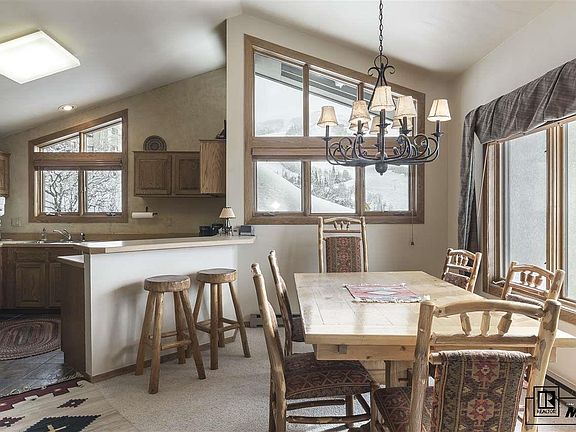 Rarely on the market 4 bedroom, 4 bath Ridge Townhome. This townhome has some of the best and biggest views of the Steamboat Ski Area you will find! This unit is fully furnished with beautiful western decor and log accents. Over 2000 square feet with a main level open floor plan with kitchen, living room & dining room, and each bedroom has it's own bath. Corner unit in a small complex with a one car carport. An easy one minute walk from your front door to the edge of the slopes!