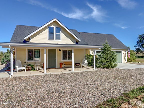 Beautiful home on acreage in Chino Valley with inviting front porch views! Cozy living room with attached kitchen perfect for entertaining. Split floor plan and additional bedroom with landing/ loft perfect for guests, an at-home office or hobby room. 2-car attached garage with workshop. Fully landscaped terraced backyard with travertine tile path leading to open patio with firepit perfect to enjoy the Arizona skies and mountain views. Surrounded by mature trees for your own private oasis! Pipe rail fence and gates perfect for pets! Come check out this great property before it's gone!