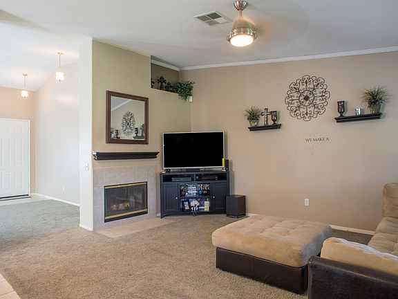 BEAUTIFUL TURNKEY WELL-KEPT 4 BEDROOMS, 2 BATH SINGLE STORY 3 CAR GARAGE HOME WITH GREAT CURB APPEAL! IN A NEWER DEVELOPED AREA OVERLOOKING THE VALLEY. HAS WIDE STREETS AND VIEW OF THE HILLS. SPACIOUS HOME, HIGH CEILINGS, COZY GAS FIREPLACE IN FAMILY ROOM, LARGE LIVING ROOM, BREAKFAST NOOK, LAUNDRY ROOM, CENTER ISLAND IN KITCHEN, CROWN MOLDING, AND TILE ROOF. MASTER BEDROOM HAS WALK IN CLOSET AND TWO VANITIES IN THE DRESSING AREA. HALL BATHROOM HAS DOUBLE SINKS IN THE VANITY ALSO. FOURTH BEDROOM OPENS UP TO MASTER BEDROOM AND CAN BE CONVERTED BACK VERY EASILY. FULLY LANDSCAPED FRONT AND BACK. LARGE BACK YARD WITH COVERED PATIO, PERFECT FOR ENTERTAINING. 5 MILES TO LAKE PERRIS, LESS THAN 13 MINUTES TO MARCH AIR FORCE BASE. LOVELY QUITE COMMUNITY OF NUEVO RANCH! CLOSE TO SCHOOLS AND SHOPPING. CALL NOW TO SEE THIS FANTASTIC HOME!