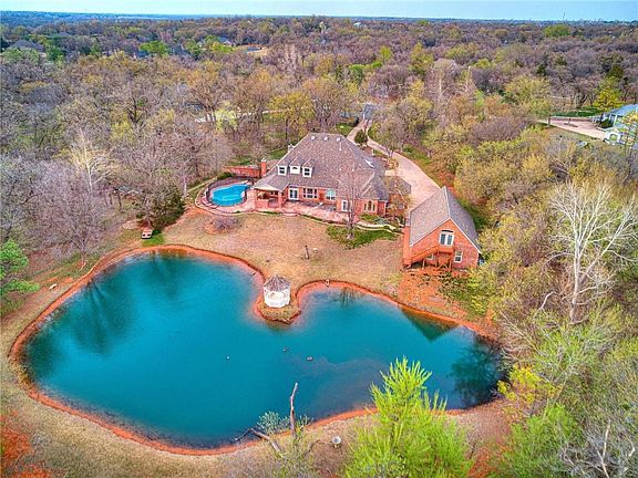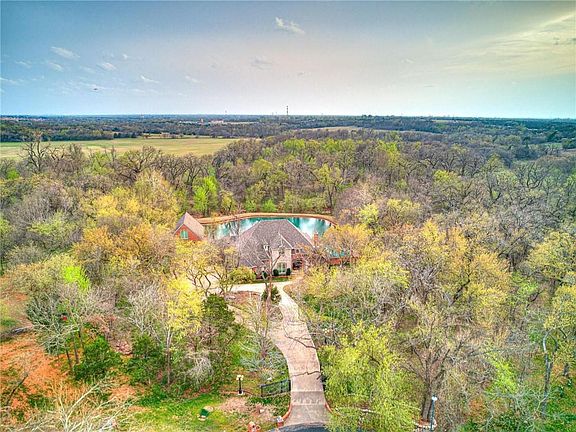 Introducing an exquisite estate nestled in the highly coveted Creekside Estates addition. Situated on approximately 6.7 acres of breathtaking landscape, this luxurious property boasts a private stocked pond with a charming gazebo perfect for tranquil moments. The home was has been impeccably maintained, offering a rare blend of timeless elegance and modern amenities. Upon entry through the gated driveway, you are welcomed into a grand 20' foyer with a stunning curved stairway. This home is ideal for entertaining guests or accommodating a growing family. The large primary suite offers peaceful views of the backyard. The gourmet kitchen is a chef's dream, equipped w stainless steel appliances & a sizable breakfast bar perfect for meal preparation or casual dining. Other amenities: gym/studio, home theater, game room, wet bar, storm shelter, outdoor kitchen, pool, dog run, dog houses, gazebo, etc. Don't miss out on the opportunity to own this exceptional estate in Deer Creek Schools.