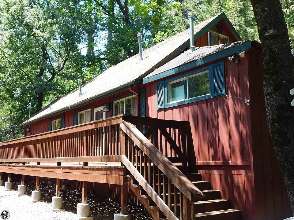 Step back in time in this vintage cabin nuzzled walking distance to town. The cabin features two bedrooms (one a master) on the main level, loft and bedroom on the upper level, living room with rock wood burn fireplace, large dining room, kitchen with breakfast bar, detached garage with two separate storage areas.
