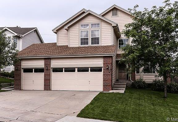 Gorgeous two story in Saddle Rock Ridge that is immaculate and remodeled beautifully. Great layout with open floor plan. Gourmet kitchen with plentiful cabinets, granite counter tops, island and pantry. Stainless steel appliances and sink with new faucet and lighting. Vaulted family room has surround sound speakers and gas fireplace. Enjoy the large study/den on the main floor with double doors. All bedrooms are on the upper floor and has a loft. Master bedroom is huge, has sitting area or for make-up, and large walk-in closet. The master bath was recently remodeled with heated tile floors, new HUGE shower with multiple heads and new hardware. Nest thermostat, humidifier, security system. The garage has a heater, built-in shelving and has a sub-panel if you should want to finish the basement. Cherry Creek Schools, close to Southlands and easy access to E-470. Definite pride of ownership here, a must see!