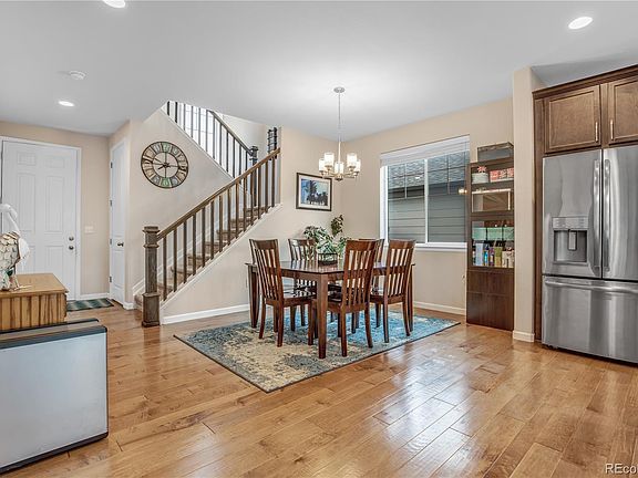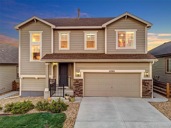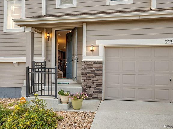 Bargain price, you won't want to miss this lovely home! As you step in you will appreciate the high ceilings and open floor plan. The dining room seamlessly flows to the kitchen and living room. It is perfect for those special times, entertaining friends and family, and comfortably living daily life. The living room is spacious and has a gas fireplace that sets the perfect mood on cool evenings. The kitchen features granite countertops, 42-inch upper cabinets with crown molding, stainless steel appliances, and a huge island with dining space. The oversized sliding glass door leads to the professionally landscaped backyard. The custom concrete patio provides all the space needed for grilling, chilling, and enjoying the summer. The landscaping features lovely trees with an irrigation drip system, a play area and garden boxes. On the main floor, you will also find an oversized powder room and mudroom on your way in from the garage. Upstairs features a spacious loft as a second living area, three bedrooms, two bathrooms, and a laundry room. The primary suite is amazing with views of downtown and the mountains! It is huge, with enough room for a sitting area or office space. The en-suite bathroom is spacious with a large shower, a double sink vanity, and one of the largest closets Richmond builds! The basement is unfinished and full of potential with egress windows and roughed-in plumbing. Additional bonus features include an upgraded security storm entry door and central air conditioning. There is so much to love here! The location is ideal, it is at the end of a street so as you look out the front windows you have an unobstructed view. The community has a zero-entry pool and a large swimming pool just blocks from the house. It is in the highly desirable Cherry Creek school district and specifically Mountain Vista Elementary, Sky Vista Middle and Eaglecrest High. Plus, it is close to E-470 for a quick drive anywhere your work or play may take you.