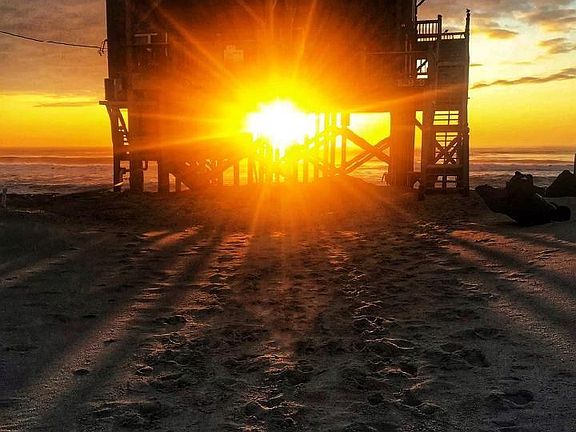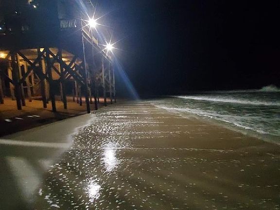 LOCATION, LOCATION, LOCATION! Oceanfront Gem! The Black Pearl is a stunning one of a kind property that you won't want to miss!This beautiful oceanfront Hatteras Island home is located in Rodanthe's premier Mirlo Beach area and offers stunning panoramic ocean views. You cannot get any closer to the water's edge than you can from this home. Bottom Level offers five bedrooms, a King master with flat screen TV and DVD, private bath and deck access, another King with flat screen TV, DVD and deck access, a King with flat screen, DVD and deck access, a bedroom with two singles flat screen TV, DVD and a bedroom with a Pyramid Bunk (queen on bottom, single on top) with TV, DVD and access to a full bath accessible via the hall. Laundry facilities and the enclosed out side shower are also located on this level. There is a large a covered deck facing the sound side. The top floor has a large open oceanfront deck with Adirondack chairs, the perfect place to enjoy your morning coffee and watch the sun rise. Inside is a spacious and well planned great room with 60" wall mounted flat panel TV with DVD in the living room area. Unwind in the sitting area with front row seats to breathtaking sunrises and ocean views. The kitchen is spacious and can handle multiple cooks. There is also a full size bathroom with stand up shower on this level. Enjoy outside dining on the oceanfront deck while catching a glimpse of the dolphins and whales go by. The screened in porch is located just off of the well equipped kitchen and offers some of the most breathtaking sunsets over the Pamlico Sound.