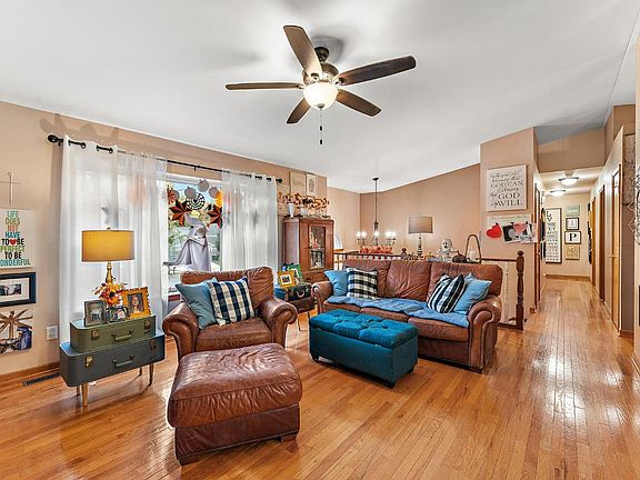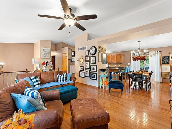 This beautiful well-built home has so much to offer! Attractive curb appeal and vibrant lush landscape w/ mature trees welcome you upon arrival. Inside the front door, you will be greeted by a spacious foyer with cathedral ceilings. Upstairs, offers an open concept living area with beautiful hardwoods throughout! The large Living Room offers a cozy vibe, lots of natural light & flows right into the Dining Room. The Dining Room is placed perfectly between the Living Room & Kitchen making an ideal layout for entertaining! The Kitchen boasts tons of cabinet/counter space, stainless steel appliances, a pantry & a peninsula for additional seating. The Primary Suite features 2 closets and an en-suite bath w/ a jetted tub. Two sizeable bedrooms & a full bathroom complete the main level. Downstairs, you will find an additional Living Room, the 4th Bedroom & 3rd FULL bathroom. Outside there is a designated play area, 2nd story deck & attached 2 car garage. Great location for commuters!