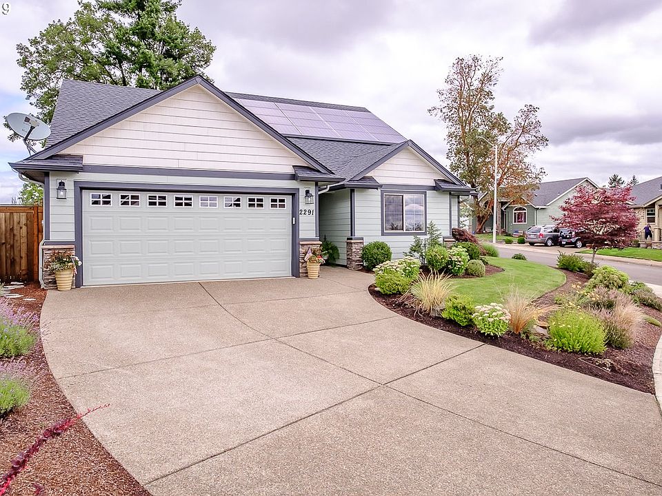 Pride of ownership in this custom built like new bright open home with solar panel savings and hilltop breezes. Welcoming entry leads to large great room w/ vaults, skylights, view to backyard and covered patio was well as cozy gas fp, dining room and large open kitchen with island, granite, stainless steel appliances and custom cabinetry. Two bedrooms and upstairs FR separate from large master w/ slider, jetted tub,WIC. Awesome yard!