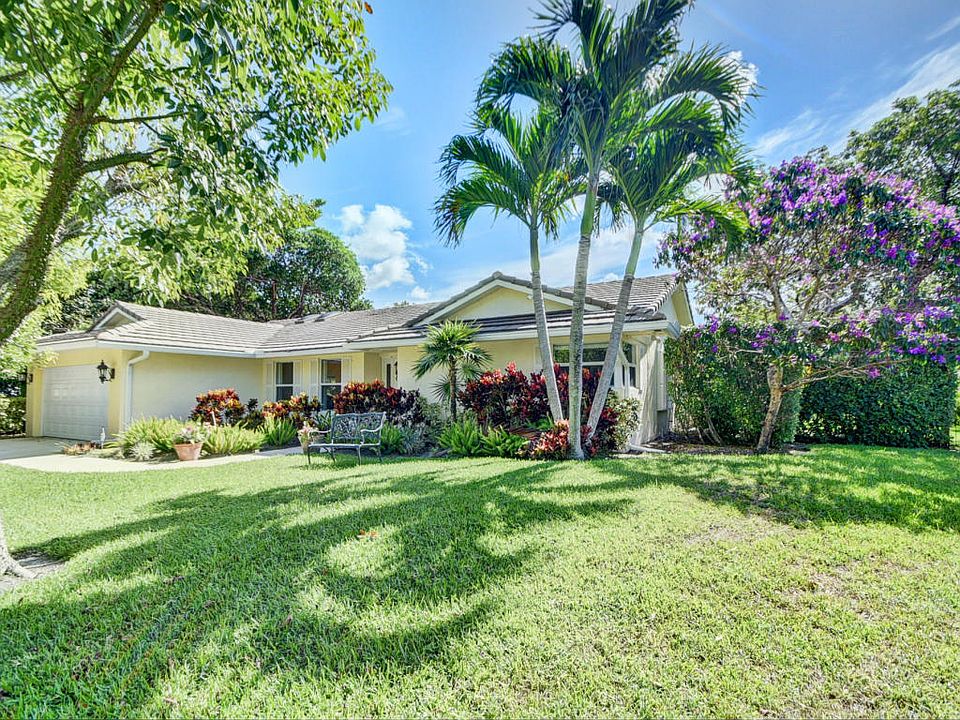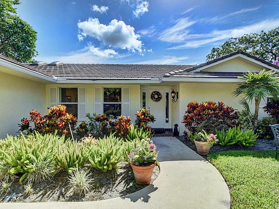Nestled in a tree lined cul-de-sac is this beautiful 3 bedroom/2.5 bathrooms one story cottage surrounded by exotic fruit trees and flowering bushes. The oversized lot provides total privacy and serenity while backing up to a canal with no rear neighbors. The fenced yard has lush ground spaces, meditation station, run around and play areas as well as delicious fruit trees that abound with fruit. Delight in the enclosed screened in pool area with covered lounge spaces that access the social areas of the home through French doors leading to the family room, kitchen and breakfast area. Large picturesque windows and cozy spaces dress this lovely home with warm Mexican tile floors and carpet in the bedrooms. Skylights light up the formal dining areas and volume ceilings brighten up...