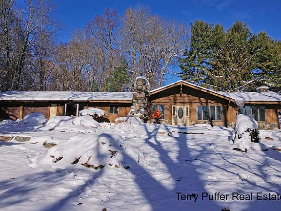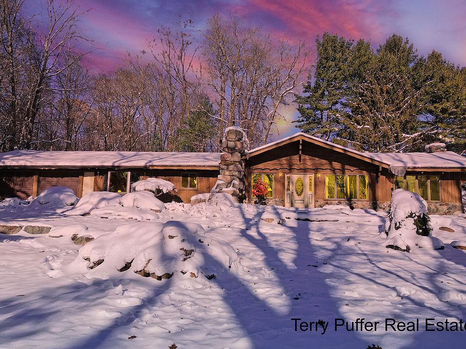 Welcome to 2291 20 Mile Road, an impressive, one-of-a-kind ranch tucked away on 2.29 wooded acres, offering exceptional privacy and a warm, rustic charm. Step inside a spacious living area highlighted by vaulted ceilings & stunning stone fireplace that sets the tone for the home's inviting character. Off the main living room is a generously sized den or office, complete with its own fireplace perfect for work, relaxation, or quiet evenings by the fire.