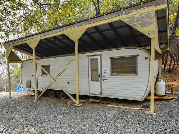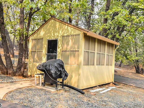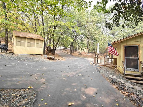Two parcels, top piece is 2.44ac and the bottom piece is 2.49ac where the house is located. Gate at the top of the property and a paved driveway. Home is small one bedroom and 1 bath with a septic for a three bedroom home. Tank is 1200 gal. Laundry room was added later, living room dining room and kitchen is open. One building is a screen room that could be used for outdoor dining. 12x14 workshop, well, with a trailer 1948 that has no value. Wood stove.