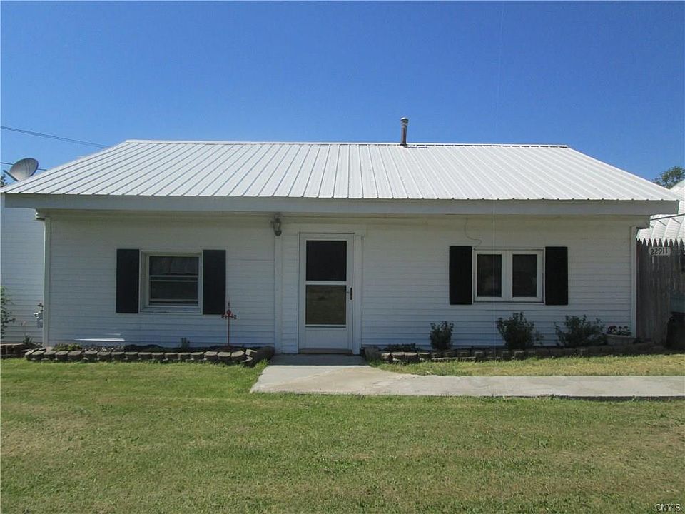Comfy cozy ranch w/recent addition for 3rd bedroom,semi finished bonus room off master bedroom for walk in closet or exercise rm.New maple starcrest quality kitchen from Whites Lumber.Glass tiled backsplash & new appliances,some new laminate flooring,new cornsilk wall to wall carpet in living room, updated bath (doorway could be heightened). 2nd bedroom used as office/playroom. Arched doorway, solid wood breakfast bar open to huge formal dining room w/corner gas fireplace,or could be family room.Patio doors to covered BBQ area, ABG pool, outdoor wood furnace (used as primary heat source) also natural gas heat & hot water. Wood storage barn, fenced yard, Quonset hut 3-4 car garage, mechanics dream w/woodstove or "man cave". Loaded w/potential! Natural gas, public water/sewer but no 3rd tax.