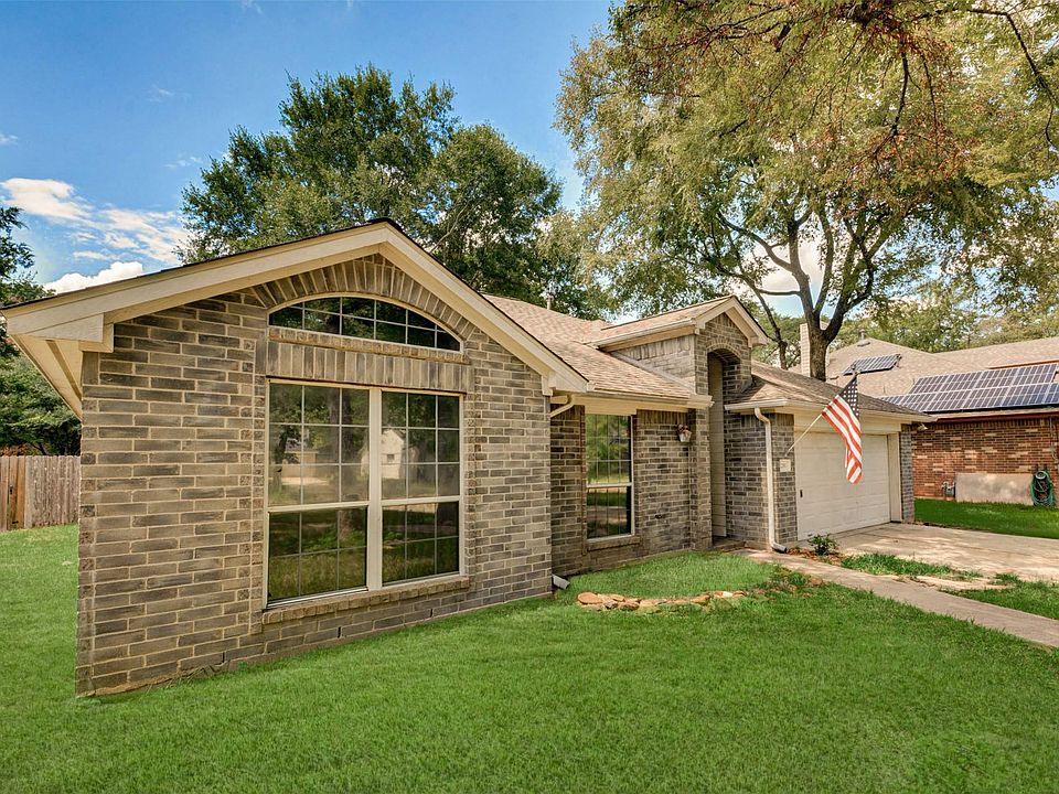 Nice One Story on Oversized Wooded Culdesac Lot close to The Exxon Campus -Woodlands! Nice Open Floorplan offers 4 bedrooms Split Floorplan *Formal Dining + Large Primary Suite w/ Separate Tub /Shower + Large walk- in closet! Kitchen Breakfast offers Oak Cabinets*Gas Cooking + Microwave Open to the Wonderful Den w/ Brick Fireplace + High Ceilings & Formal dining! Great Back yard!! Excellent KISD!