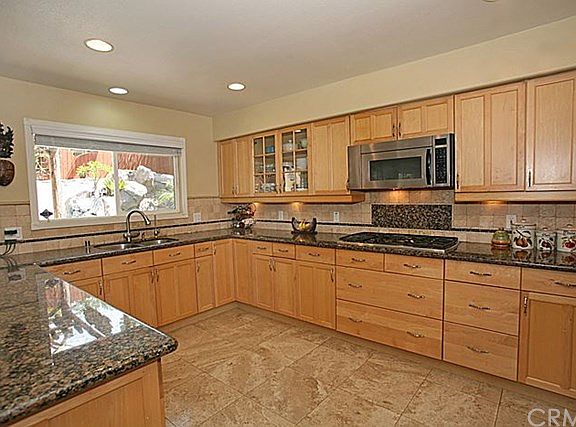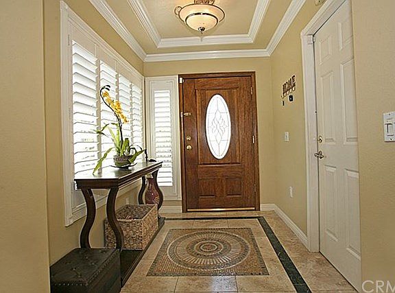 This upgraded 5 bedroom 3 bath home has two bedrooms and a full bath down and master suite plus two very spacious bedrooms and two full baths and a loft upstairs. Travertine flooring with tumbled stone detail throughout. Large gourmet kitchen with maple cabinets, granite and stainless appliances. Plantation shutters, beautiful hardwood upstairs, along with a loft that can be used as an office/den/playroom. Backyard is a paradise oasis with salt water pool, spa, waterfall feature and slide. Built-in BBQ, unique clay dome fireplace and seating area. Minutes away from Irvine Spectrum, freeway, shops and dining!