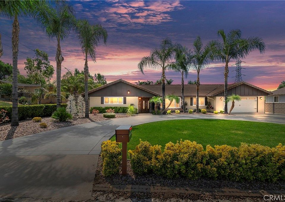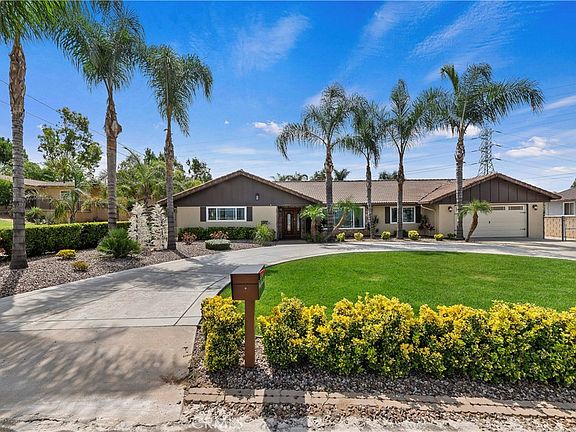 Welcome to Vista Grande Way! This home is located in a unique area of the highly sought after community of Grand Terrace. This gorgeous 4-bedroom, 3 full bath home has all that a selective buyer prefers and more. Your senses will awaken the moment you walk through the front door. Each room has something unique to offer from custom flooring, handcrafted walls, a cozy fireplace, crown moulding, finished doorways, to an elegant picture window in the formal living room that overlooks the gorgeous views of the city. Your inner chef will come out in the open concept kitchen with granite counter tops, an oversized island, stock pot water faucet, a beverage chiller and a walk-in pantry. In the east wing of the home, you will find two spacious bedrooms, an elegant, remodeled bathroom and a large guest bath with a vanity area. In the west wing you will find two additional bedrooms and a full bath. The back yard is an entertainer’s delight with a sparking pool that has a decorative tile bottom, all surrounded by pebble finished concrete. Two large patio covers provide shading to both, the back and to the east wing of the home. 7 steps away you will arrive at your private park with beautiful-lush green trees and a gazebo area. Beyond that you will see 32 fruit bearing trees: avocado, navel oranges, apple, fig, grapefruit, peach, nectarine and more. The 33,250 square foot lot has been approved for a ADU up to 1200 square feet. This home is a must see!! Don’t miss the opportunity to live in a home that a former NFL quarterback has lived in. Home has many upgrades that include new sewer, new Apex plumbing, new pool equipment and a water softening and purifying system, all done less than 36 months ago. Open house 11:30-2:30 9/10/2023