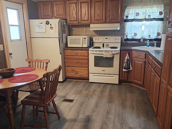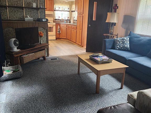 Nicely updated singlewide on a permanent foundation, situated on a beautiful, level lot bordering a small mountain stream. The lot is OWNED, not rented. Home features an updated kitchen with newer flooring and table space, 2 bedrooms, 1 full bath with laundry, and a comfortable living room. Enjoy the outdoors with covered porches on both the front and back, a paved driveway, and a storage shed. Recent improvements include vinyl windows, exterior doors and storm door, updated electrical, insulation, plumbing, lighting, fuel tank, partial bathroom update and more (full list available). Convenient rural setting close to shopping and amenities. Likely cash purchase due to age. Home is being sold as-is; overall condition shows well with many updates recently completed. Furnishings may convey if desired.