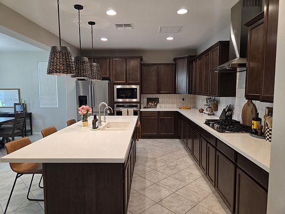 This immaculately maintained home is ready to rent! A five-bedroom and two full-bathroom home has all of the high-end finishes you are looking for. From the gorgeous kitchen cabinets and beautiful quartz countertops to the maintenance-free backyard with a full, covered back patio, all the details have been carefully planned, making this the perfect home for those who want to feel like they are living in luxury in the heart of Queen Creek. The master bedroom is separated from the other bedrooms, offering an extra level of privacy within the home.