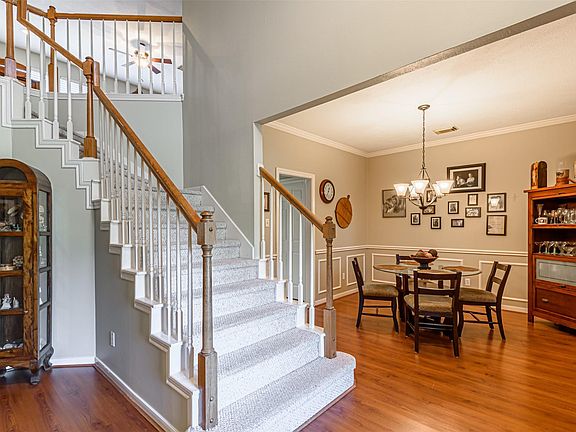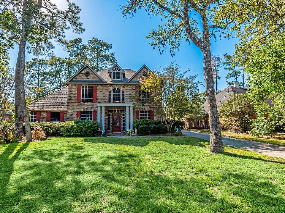 Beautiful 2 story home with its own private backyard oasis. The foyer of the home opens to the office on the left and the dining room on the right with lovely wainscotting & chair rail. The kitchen has all ss appliances, large island, gas cooktop, wall mounted oven & huge ss sink with bay windows. The kitchen also has a large walk-in pantry, built in desk area & breakfast room. The living room has high ceilings, gas log fireplace, large windows overlooking the pool & covered patio. The primary bedroom has carpet, high ceilings & En suite bath. The primary bathroom features an updated dual sink vanity, granite counters with plenty of storage, large corner soaking tub, separate shower and large walk-in closet. Upstairs is the Gameroom, three secondary bedrooms and a plethora of storage. The backyard has a gorgeous pool with waterfall, tons of greenspace, storage shed, covered patio with hot tub, additional covered patio area with built-in seating. Roof was replaced 1.5 years ago.
