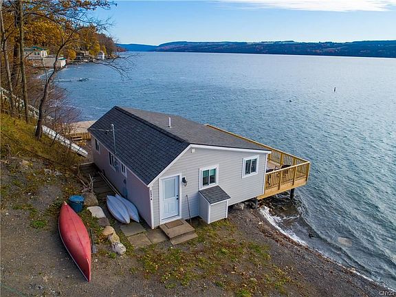 Incredible, unique property consisting of 224' of private, east side lakefront with two wonderful turn-key cottages. The cottage at the water's edge is brand new w/hardwood floors, 2 bedrooms, granite counter-tops, stainless appliances, laundry hook-ups, large deck, and absolutely magical views. It feels like you are on a house boat! The upper cottage boasts 3 bedrooms, a remodeled kitchen, wood floors, fireplace, great yard and large wrap-around porch. The two cottages share a new septic. The developed waterfront includes a new permanent dock and a shale beach. The cottages each offer incredible outdoor entertaining space, their own parking and privacy. This is absolutely perfect for a family compound, an investment opportunity, for a lake owner to use one cottage while simultaneously renting the other cottage for supplemental income, or simply for someone who wants a wonderful slice of Skaneateles Lake. Move in immediately and enjoy the lake - being offered fully furnished.