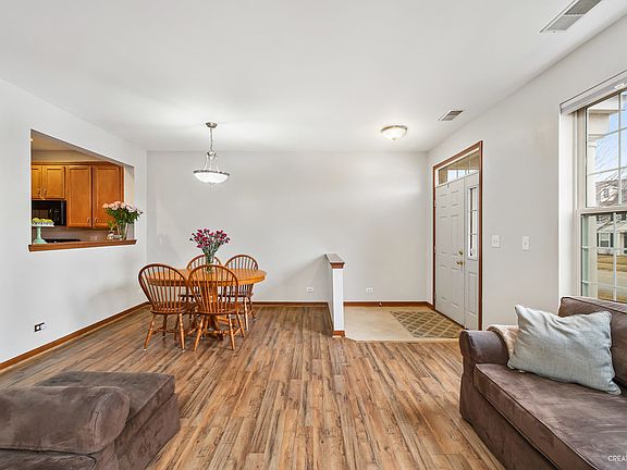 Impeccable 3 Bedroom + LOFT Townhome on PREMIUM LOT across from Washington Square Pavilion! Open Floor Plan with over 1500 square feet of living space & upgrades galore! Solid Wood 6 Panel Doors throughout. 1st floor, freshly painted in today's colors, features warm wood laminate floors. Spacious, light filled family room with COZY FIREPLACE (RARE in Washington Square!). Family room flows into light & bright Dining Room with large table space. Gourmet Kitchen boasts 42 inch solid Maple Cabinets with Crown Molding & Pull Out Drawers - another upgrade not often found in Washington Square! NEW STAINLESS STEEL DISHWASHER! Wood Railings (upgrade) & NEW CARPET lead to your 2nd level with 3 spacious bedrooms (all with ceiling fans) + LARGE LOFT! Upgraded Wood Laminate Floors in Loft & all Bedrooms. Luxurious Master Suite with VAULTED CEILING, ceiling fan & Walk-In Closet. Master Bath & Hall Bath boast solid maple vanities with tons of counter space & tub/shower combination. Convenient 2nd floor laundry - washer & dryer included! MAN CAVE/SHE SHED ALERT! Over-sized 2 car garage is FULLY INSULATED (garage door & all walls) with storage shelves built by an engineer! Super Sturdy. NEWER ROOF & A/C 2018. Water Heater 2015. NEW DISHWASHER - less than a week old! Premium View of Washington Square Pavilion featuring a covered fire pit/park! Close to multiple parks, Metra, expressways, restaurants & shopping. Acclaimed Oswego 308 School District! WELCOME HOME!!