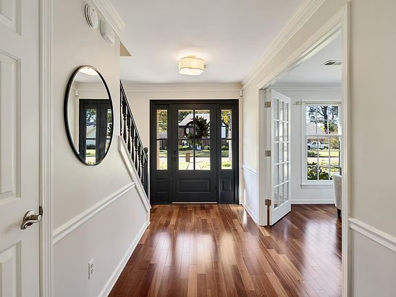 Welcome to this stunning home on a beautiful corner lot in sought-after Duntreath! Enjoy outdoor living at its best with a sparkling jetted pool (liner replaced in 2021) and plenty of space for entertaining. Inside, the updated kitchen features a built-in refrigerator, double ovens, and a warming drawer—perfect for the home chef. Fresh paint throughout and brand-new windows bring in abundant natural light. The home offers a primary suite upstairs and also a bedroom with ensuite bathroom downstairs, ideal for flexible living arrangements. Both upstairs bathrooms have been tastefully renovated, and the huge primary closet features customizable shelving for exceptional organization. Luxury vinyl plank flooring spans the entire upstairs, combining style and durability. All this just 0.4 miles from Dogwood Elementary—a prime location close to schools, shopping, parks & fire station.