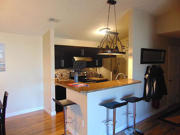 Impeccable finishes throughout this updated spotless condo. As you enter you're welcomed by the stylish laminate flooring leading you into your spacious living room with cathedral ceilings & cozy fireplace for kicking back and relaxing. Preparing meals is a pleasure in the streamline kitchen with newer cabinetry featuring soft close hinges, under cabinet lighting, custom tiled backsplash, solid surface countertops and stainless appliance package. Split bedroom plan for privacy complete with a walk-in closet in each. Convenient bluetooth thermostat rounds out the newer HVAC system. Call today