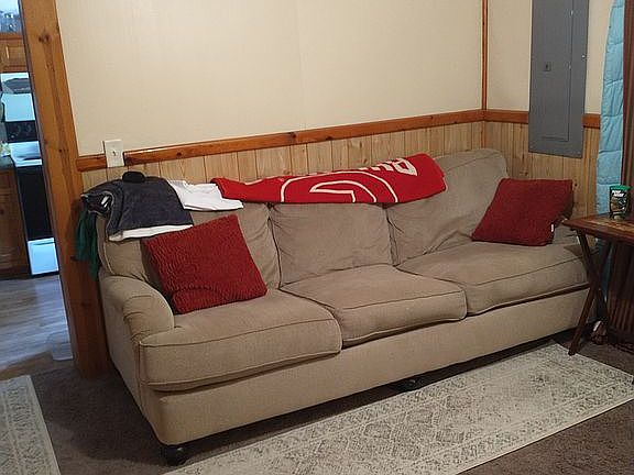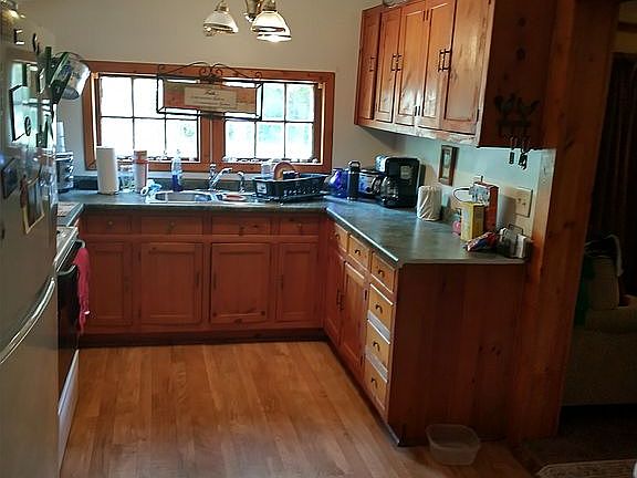 Cottage with metal roof, covered front porch, side deck leads to back covered Porch, Eat in Kitchen, Basement area has 6'2" ceiling. Close to town.