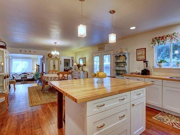 Nestled in the woods with plenty of space, nature, and privacy, yet close to town. 3.5 acres with Beautifully updated custom home, vaulted ceilings, natural sunlight light, bamboo and hardwood floors, custom kitchen w/ oversized island, large dining area, fireplace, and storage galore. Large beautiful windows w/ Valley view. Master suite with jetted tub, walk in shower and so much more. Double car garage, Includes outbuildings, and much more!