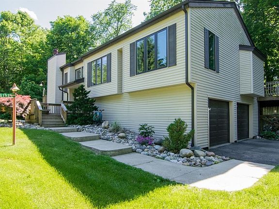 Just minutes from Ann Arbor sits this private retreat nestled in 4+ acres with mature trees and so much nature! Vaulted wood ceilings with skylights allow for sun filled spaces throughout the entire first floor. Amazing views from every angle in the updated kitchen with Corian countertops, backsplash, GE Cafe SS appliances, walk in pantry, breakfast bar and flows into the dining area with access to the wrap around deck. Brick surround wood burning fireplace is the focal point of the cozy great room. Updated Master suite with walk in closet and bath. 2 additional bedrooms with great closet space share a nicely appointed full bath. One of the bedrooms includes an enchanting little loft area. The walk out lower levels has an additional bedroom, exercise room, recreational space, half bath, sauna and laundry. Updates since 2014 include: new roof, skylights, furnace. air conditioning, Pella windows, door wall, storm doors, garage doors, RO system, all new light fixtures, and hardwood floors on entire first floor. This home speaks to all nature lovers, bird enthusiasts, and someone who will enjoy being outdoors, working in the garden and having bonfires! Everything has been done!