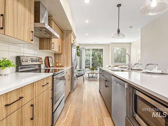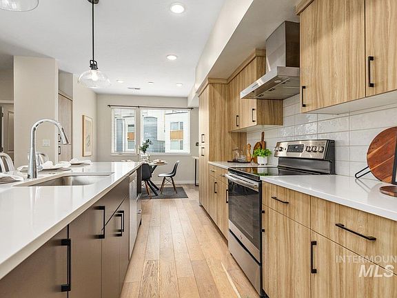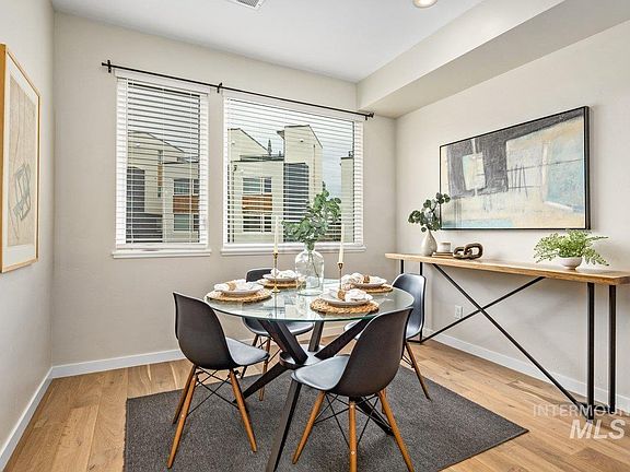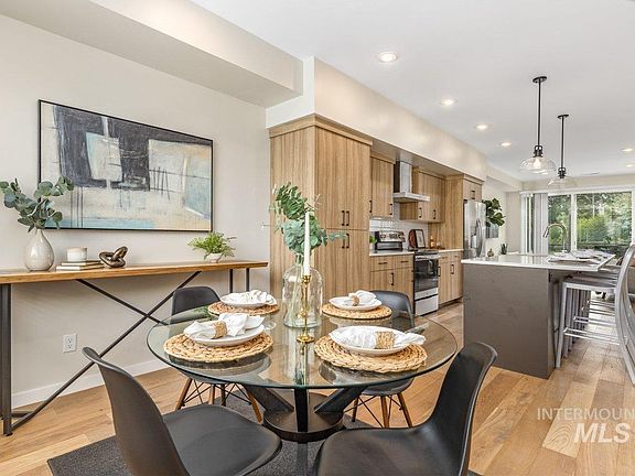 Gorgeous rooftop views delight in this townhome on the Boise Bench. With an ideal location, you are five minutes from Downtown Boise, the Boise River, Boise State University and the airport. Close to grocery stores and walkable to shops and restaurants on Vista Ave. Simplicity and good taste are felt in this modern and fresh design. Oversized kitchen island for gathering and entertaining. Euro cabinets and quartz counters throughout. Boasting a large communal, yet private, layout throughout the space. Incorporating stunning vaulted ceilings. With 3 bedrooms and 3.5 bathrooms, this floorplan is perfect for roommates, guests and remote working. One bedroom and bathroom has their own floor, providing a space that feels private from noise, perfect for remote working. Parking is a breeze with a garage and a community parking lot steps from the front door. Some of the furniture is for sale at a great price. Welcome home!