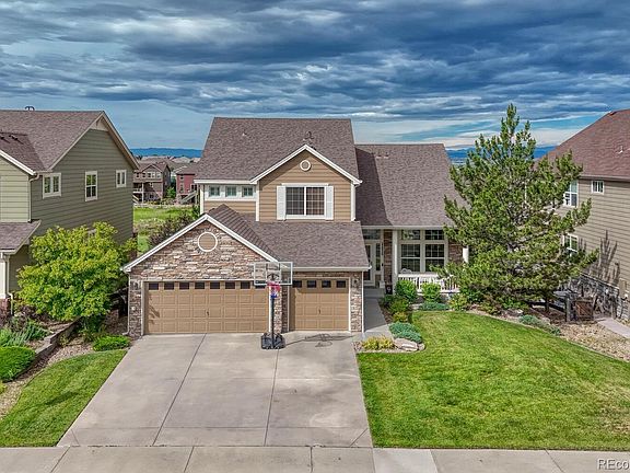 Price Reduced! Welcome to 22920 Hope Dale Avenue, a stunning former model home nestled on the 13th hole of the Black Bear golf course. This well maintained residence boasts 5 bedrooms, 4 bathrooms, and a spacious 4,134 square feet of finished living space. The home's prime location on a cul de sac offers privacy and tranquility, while the walkout basement and 3-car garage provide convenience and ample storage. Enjoy breathtaking mountain views from the comfort of your own backyard and overlooking the golf course. The well designed walkout basement boasts a wet bar, exposed wood beams, stone, a large rec room and an open theatre concept. Don't miss the opportunity to make this exceptional property your own and experience the best of Colorado living.