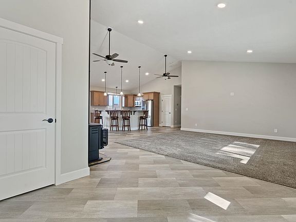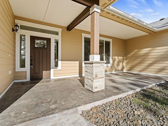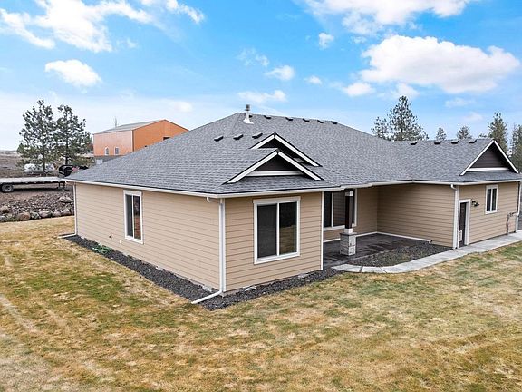 Nestled on 4.75 tranquil acres, this better than new 2022-built, single-level home offers luxurious living with minimal upkeep. Enjoy the seamless design and easy accessibility of this stunning residence. Step into the open-concept living space featuring a charming foyer, sunlit living room with cathedral ceilings, an ample dining area, and a spacious kitchen with a large island and walk-in pantry. With four bedrooms, including a roomy primary suite with a walk-in closet and a luxurious ensuite bath, comfort is at your fingertips. Revel in the details: luxury vinyl plank flooring, a cozy propane stove, custom blinds, and a high-efficiency furnace. Outside, relax on stamped concrete covered patios in both the front and back, surrounded by low-maintenance landscaping and a full sprinkler system. Additional highlights include a two-car garage, a sizable 36' x 48' shop, RV hookup, electronic gate, and high-quality fencing around the property. Don’t miss your chance to experience this exceptional home!
