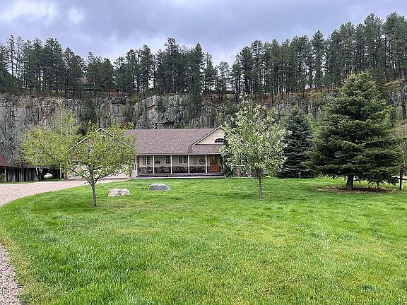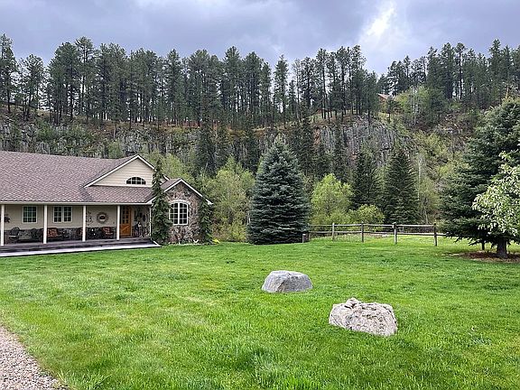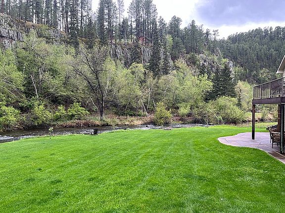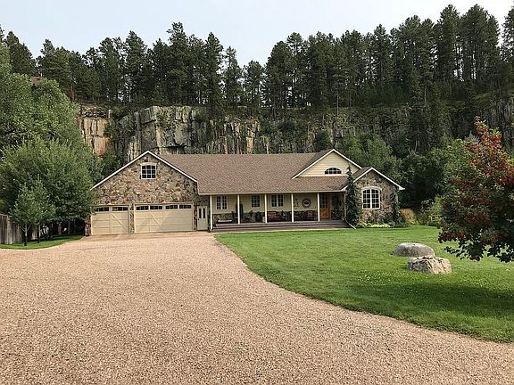 Glen and Mary Kane used their nearly 30 years of building and design experience to create a timeless home on a 1 acre Rapid Creek lot built in 2005. Home was designed in a way that actually brings this breathtaking area into the home. Views of foliage, creek, cliff wall and wild life captivate you from every angle. Home Features: 2 Gas Fireplace 1 Electric Fireplace Custom Hardwood Floors Heated Tile floors in all tile areas Solid Cherry Raised Panel Doors with Emtek Hardware Custom lighting Canyon Lights Heat pump, built-in humidifier, Infrared system to purify air Water softener, two 80 gallon water heaters Custom cabinets throughout, Cherry, Hickory and Oak Granite countertops Walk-in Pantry 3 bedrooms 2-1/2 baths Master bedroom with fireplace, master bath, huge walk-in shower and walk-in closet with builtins, 2 separate granite vanities with make-up area. Office / Den Living Room with fireplace, window seat and lighted alcoves Dining Room Large Laundry Room with lots of built-in cabinets and sink. Large Family Room with fireplace, pool table, projector with large screen, separate kitchen area Lots of storage inside and out 3 car attached garage with built-in cabinets with large storage loft. Lots of decking and patio to enjoy this beautiful area with charming front porch Large separate detached garage with living quarters full bath and laundry area Private Well and Septic System Great neighborhood and neighbors, coveted location 15 minutes from Rapid City Call Glen at 605-390-7290 with questions or to set up your personal tour.