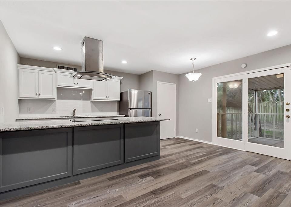 Completely renovated home with a contemporary sophisticated vibe! This home offers thoughtful detail throughout. Perfect for entertaining as it offers an open kitchen with an oversized countertop overlooking the family room. The family room has beautiful built-ins and an exposed brick wall. The home also has a formal living room with cozy fire place. The kitchen is equipped with new state-of-the-art appliances- stainless steel stove with modern overhead range hood, new dishwasher and new stainless steel refrigerator. New wood-like floors throughout, new cabinets in contemporary light and warm colors along with fresh paint throughout. Luxury bathrooms with modern contemporary white cabinets, stylish framed mirrors and granite countertops. The large backyard has a covered porch and storage shed. Nestled in Post Wood Subdivision with various shops and restaurants at your fingertips-Everything is just a step away. Home did not flood in Harvey or Imelda. New roof February 2020.